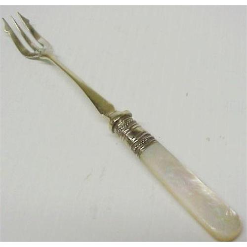 MADE FROM REAL LSTROUS MOTHER OF PEARL HANDLE AND SILVER PLATED FORK.EXCELLENT SED CONDITION FREE FROM CHIPS , MEASURES 7 inch LONG.US BUYER PLEASE PAY 7.00 FOR SHIPPING PLUS INSURANCE.THANKS.