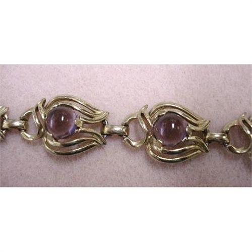 BEAUTIFUL GOLD TONE AND PURPLE COLOR CABOCHON-GLASS-RHINESTONE NECKLACE, as per images, excellent used condition, measures about 16 1/2" long, US Buyer to pay 7.oo for shipping plus insurance.THANKS.