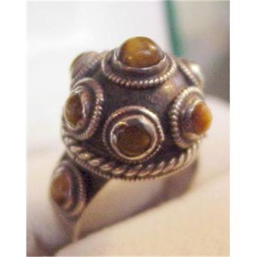 BEAUTIFUL LADIES MEXICAN SILVER POTION RING, MADE FROM 925 SILVER AND FEATURING GORGEOUS TIGER EYE STONES, ALL 8 OF THEM,LOVE THE ANTIQUE LOOK OF SILVER AND SFT COLORS OF THE STONES,tHE RING OPENS - HINGED LID as per picture, AND IT IS ADJUSTABLE SIZE - US BUYER TO PAY 7.00 FOR SHIPPING PLUS INSURANCE,THANK YOU.