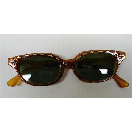 BEAUTIFUL CATS EYE STYLE SUN GLASSES, MADE IN U.S.A. -Excellent condition, Measure 5 1/4" ACROSS, US BUYER TO PAY 5.00 FOR SHIPPING PLUS INSURANCE,THANKS.
