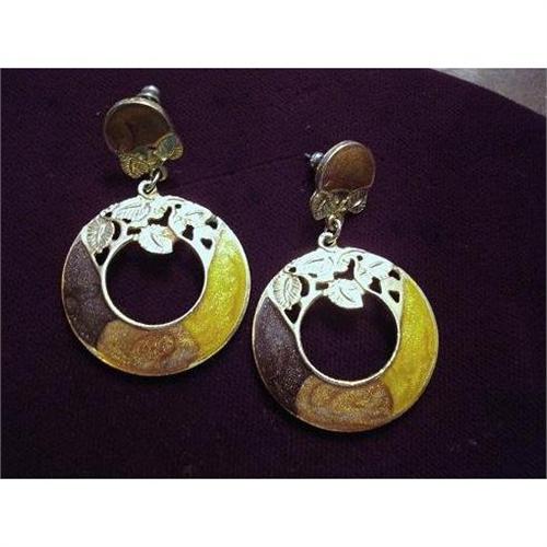 LOVELY VINTAGE EARRINGS, MADE IN GOLD TONE METAL AND LOVELY EARTH COLORS ENAMEL,NOT SIGNED,as per images, Excellent condition, Measuring close to 1 3/4" long and 1 1/4" in diam., US Buyer to pay 7.00 for shipping plus insurance.THANKS.