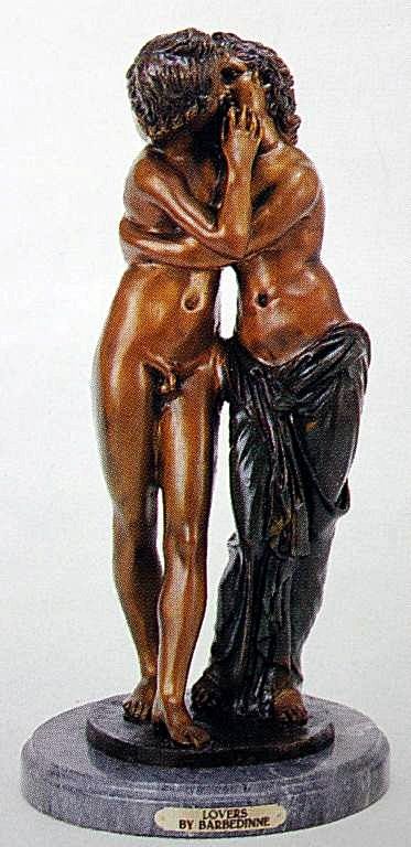 "LOVERS" BRONZE SCULPTURE - AFTER BARBEDINNE - BEAUTIFUL COLOR PATINA - MOUNTED ON A FINE ITALIAN MARBLE BASE - BEAUTIFULLY DETAILED - SIGNED - MINT CONDITION - 22"H X 10"W - LOST WAX CAST BRONZE