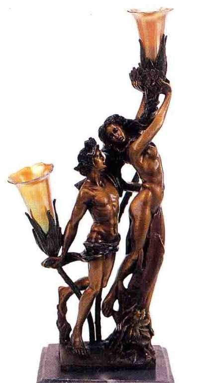 "LOVERS" BRONZE SCULPTURE LAMP - AFTER RUGERRI - BEAUTIFUL COLOR PATINA - MOUNTED ON A FINE ITALIAN MARBLE BASE - BEAUTIFULLY DETAILED - SIGNED - MINT CONDITION - 23"H X 8"W - LOST WAX CAST BRONZE