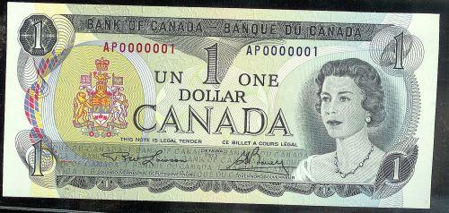 LOW SERIAL NUMBERED NOTE A/P 0000001 $1 1973 BC-46a Lawson-Bouey, Gem uncirculated. SCARCE!