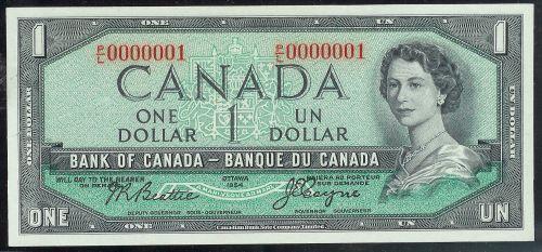 LOW SERIAL NUMBERED NOTE P/L 0000001 $1 1954 BC-37a Beattie-Coyne, uncirculated and well centered. SCARCE!