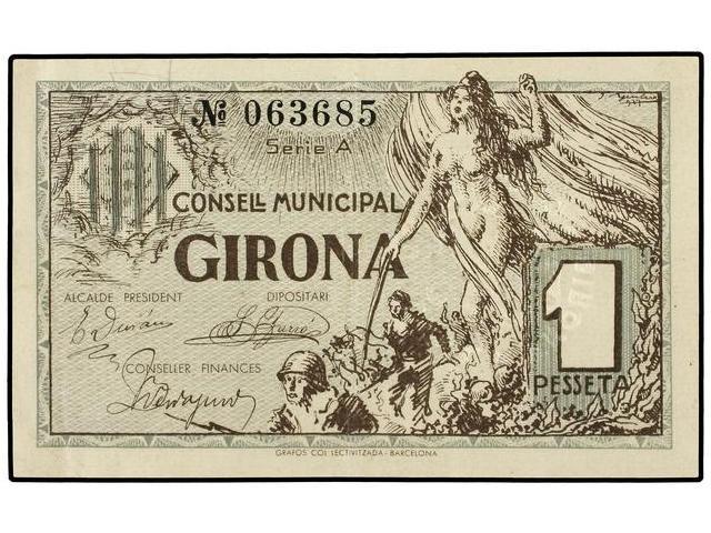 LOte 3 billetes 0,25, 0,50 y 1 Pesseta. Abril 1937 y 25 Juny 1937. C.M. y Aj. de GIRONA. AT-1121/112