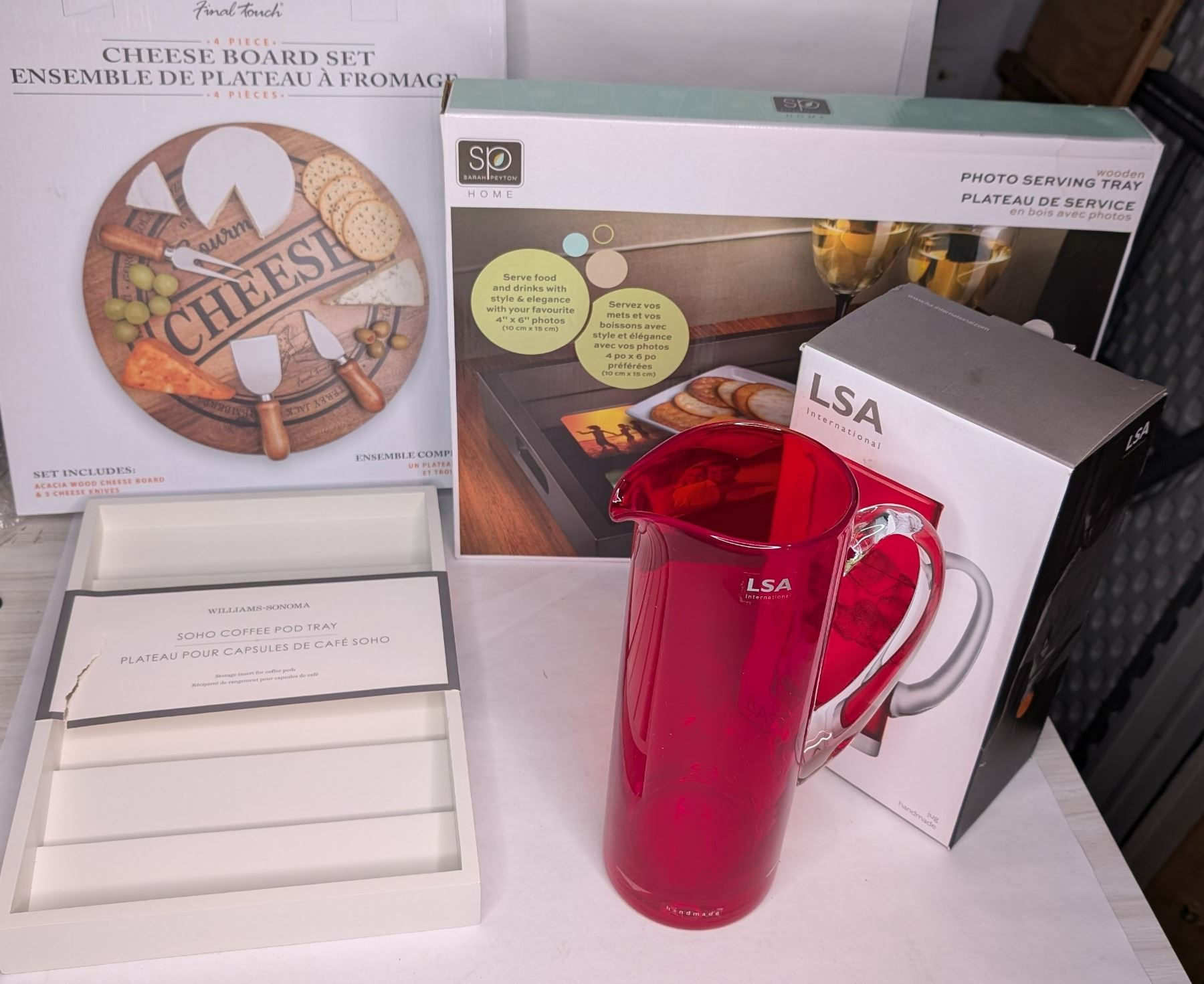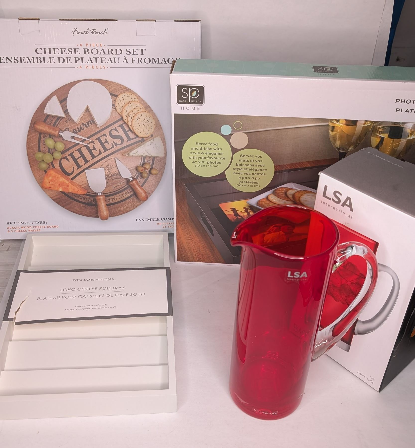 LSA Polish Art Glass Pitcher, Cheese Trays and Coffee Pod Organizer