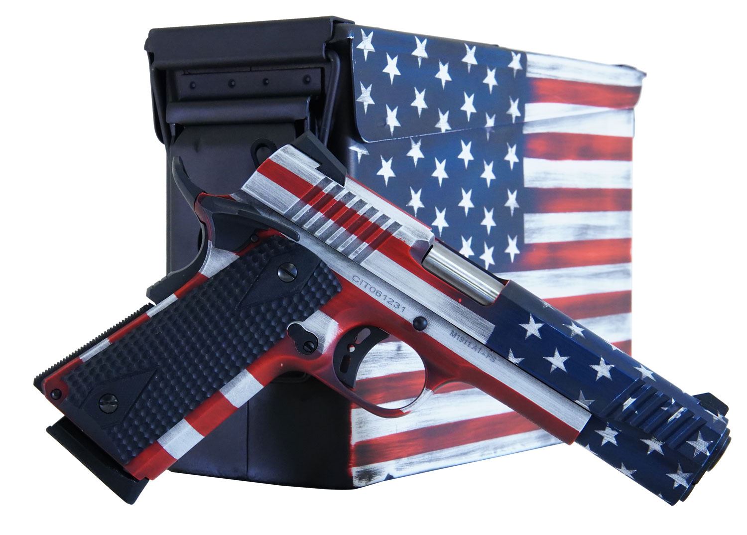 36.8 oz, 5"BRL, Ambidextrous Thumb/Beavertail, With Flag Ammo Can, Series 70 Firing System;Full Length Guide Rod,Skeletonized Hammer & Trigger, G10 Grips, Novak Stlye Sights
