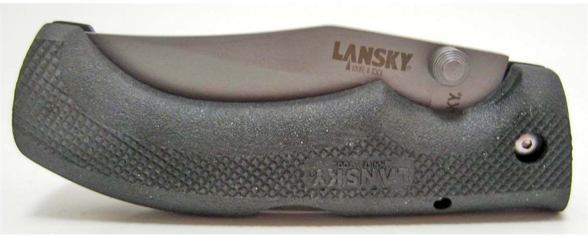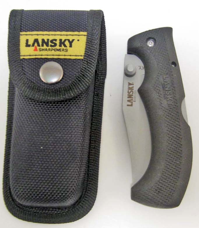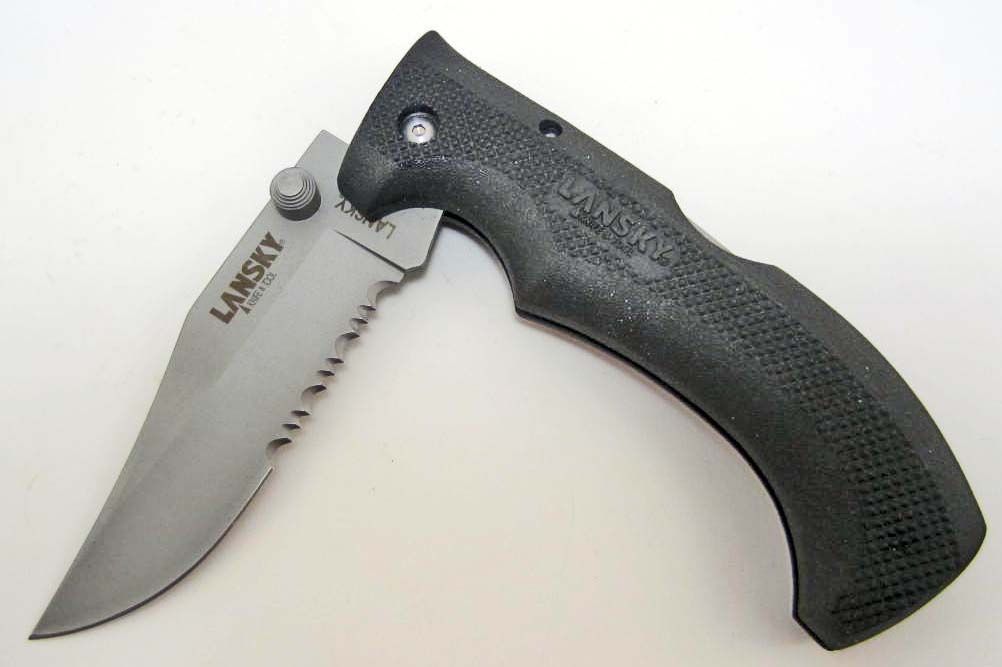 4 7/8" closed. Stainless partially serrated clip blade with dual thumb studs. Textured black rubber handles. Black nylon belt sheath.