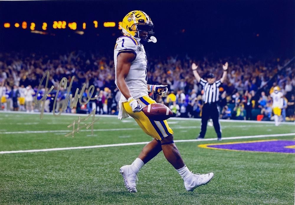 LSU Ja'Marr Chase facsimile signed photo. 8x10 inches. This item is a reprint of an original autograph