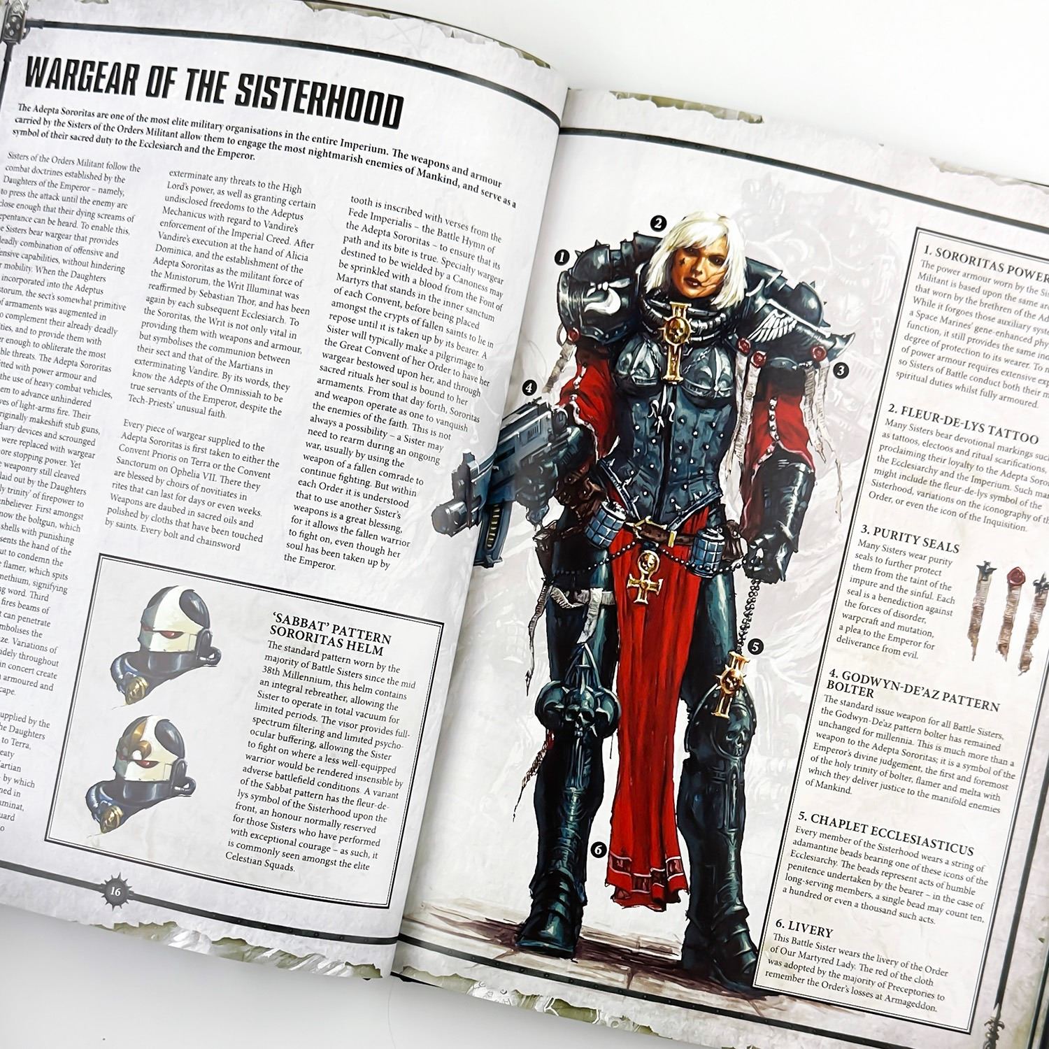 #8237 - LIMITED EDITION CODEX GUIDE: ADEPTA SORORITAS THE SISTERS OF BATTLE - WARHAMMER 40,000K 40K. GAMES WORKSHOP HARDCOVER HC FANTASY ROLEPLAYING GAME GAMER BOOK - 112 PAGES. MEASURES: 8” X 11”
