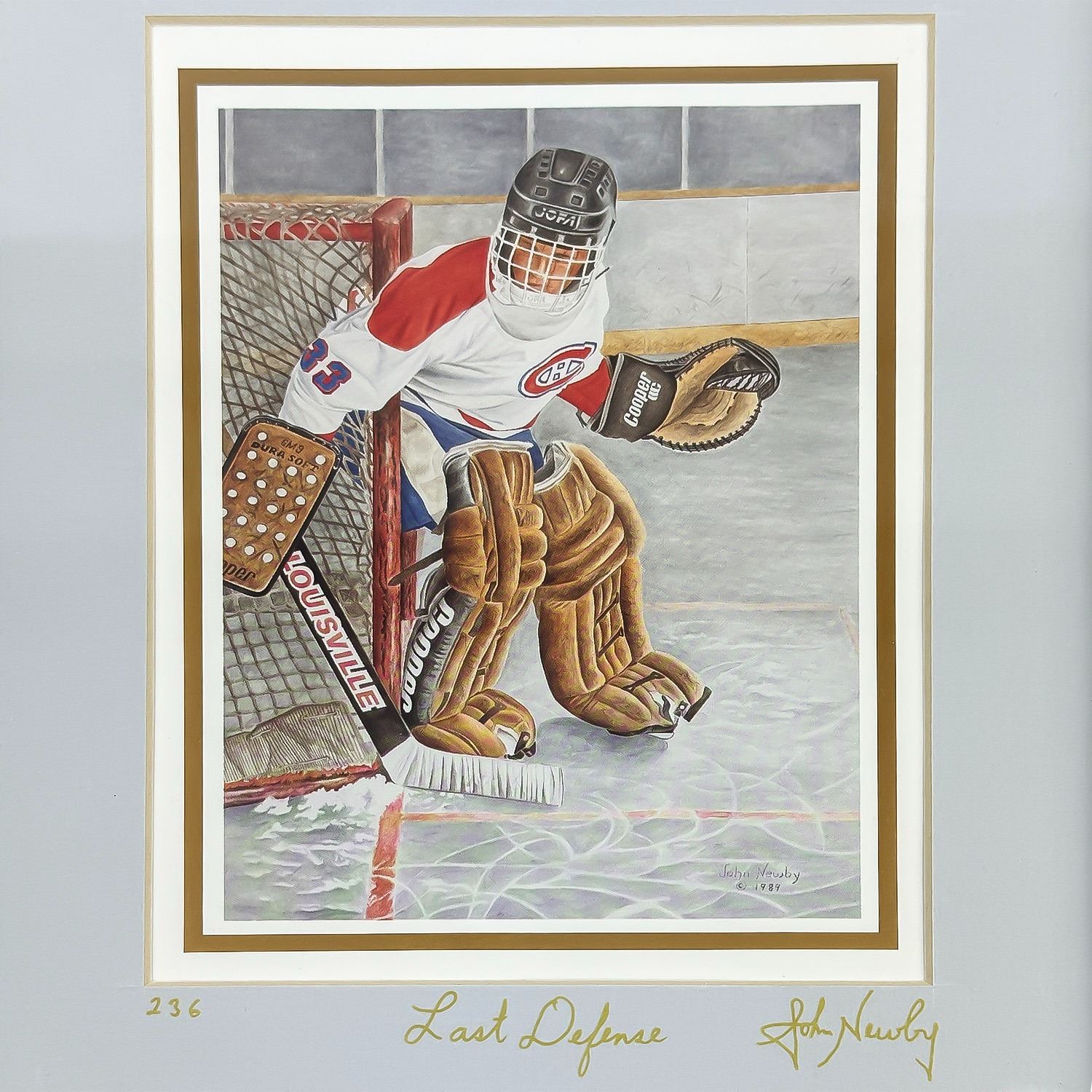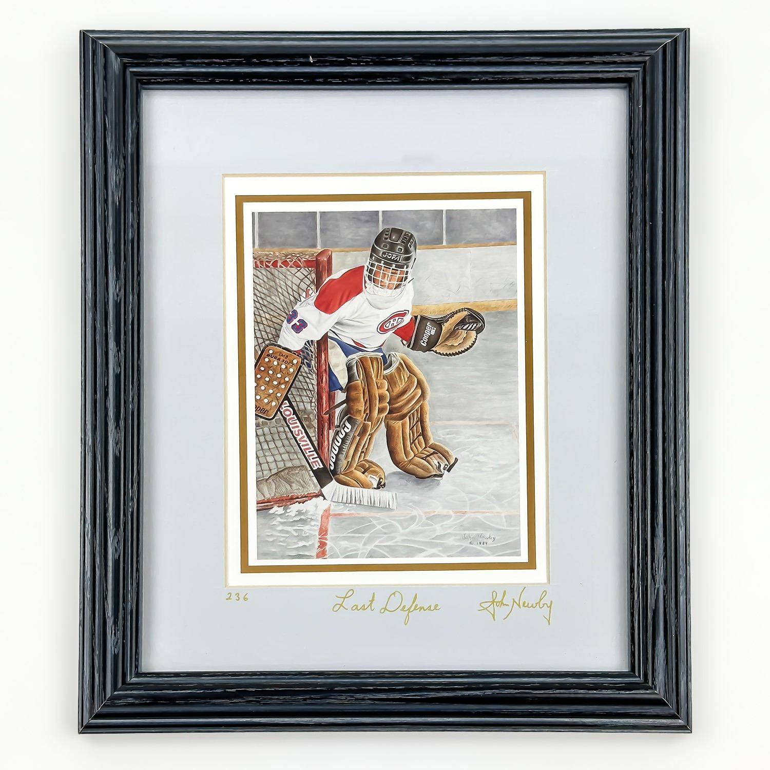 #8862 - LIMITED EDITION PRINT - HOCKEY GOALIE - NUMBERED #236. MEMORIES OF CHILDHOOD COLLECTION - TITLED “LAST DEFENSE” BY JOHN NEWBY 1989. FRAMED AND UNDER GLASS. MEASURES: 9.5” X 11.5”***ITEM(S) LOCATED IN LETHBRIDGE ALBERTA. FREE TRANSPORT TO EDMONTON OFFICE AVAILABLE FOR THIS AUCTION. WORLDWIDE SHIPPING IS AVAILABLE FOR ALL ITEMS