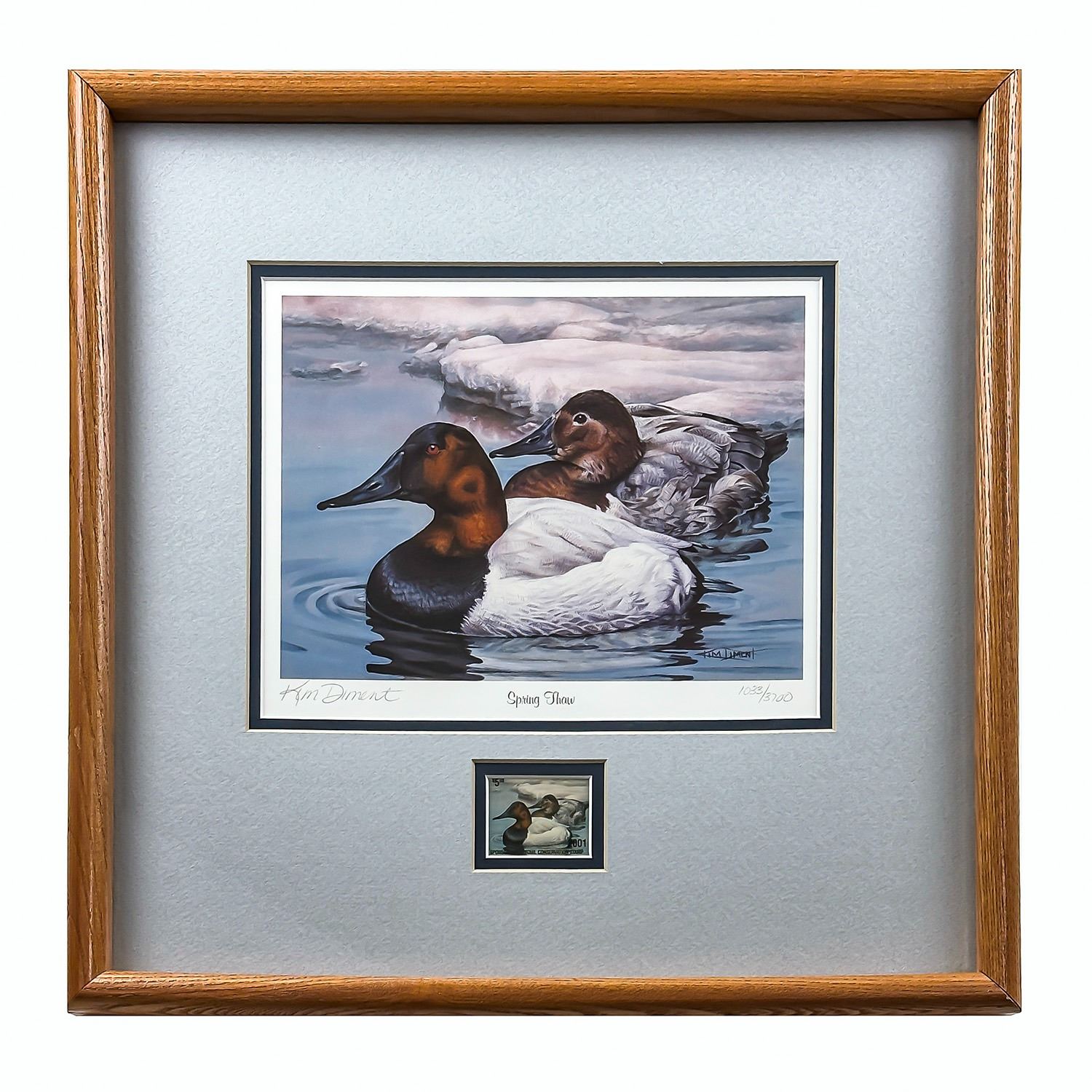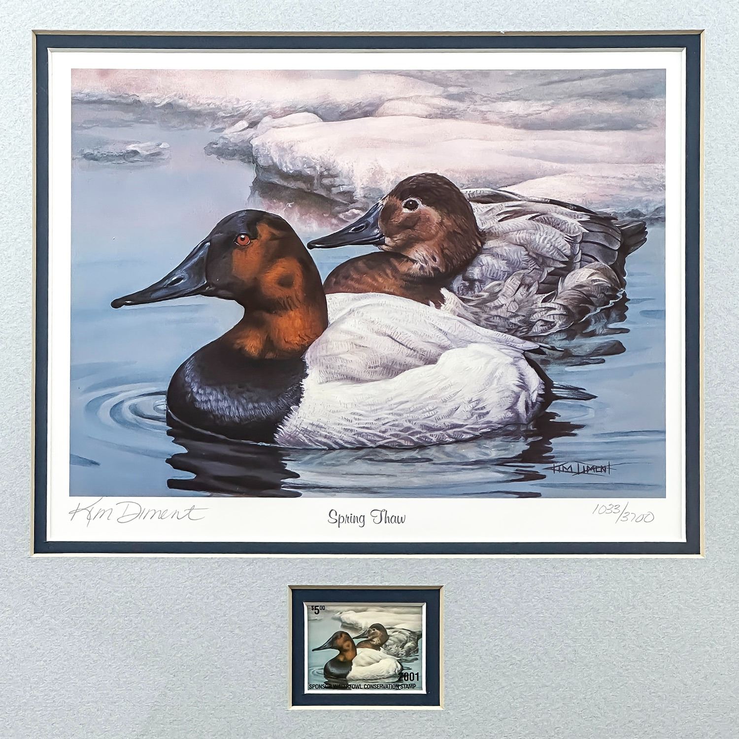 #8993 - LIMITED EDITION KIM DIMENT SIGNED AND NUMBERED PRINT - 1033/3700. 2001 MICHIGAN DUCKS UNLIMITED SPONSORS PRINT “SPRING THAW” BY KIM DIMENT. FRAME MEASURES: 16” (40.5 CM) SQUARE***ITEM(S) LOCATED IN LETHBRIDGE ALBERTA. FREE TRANSPORT TO EDMONTON OFFICE AVAILABLE FOR THIS AUCTION. WORLDWIDE SHIPPING IS AVAILABLE FOR ALL ITEMS