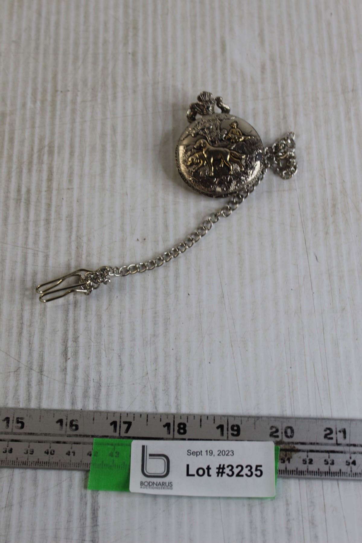 LTD Quartz Pocket Watch - New Battery, Runs (Hunting Theme)
