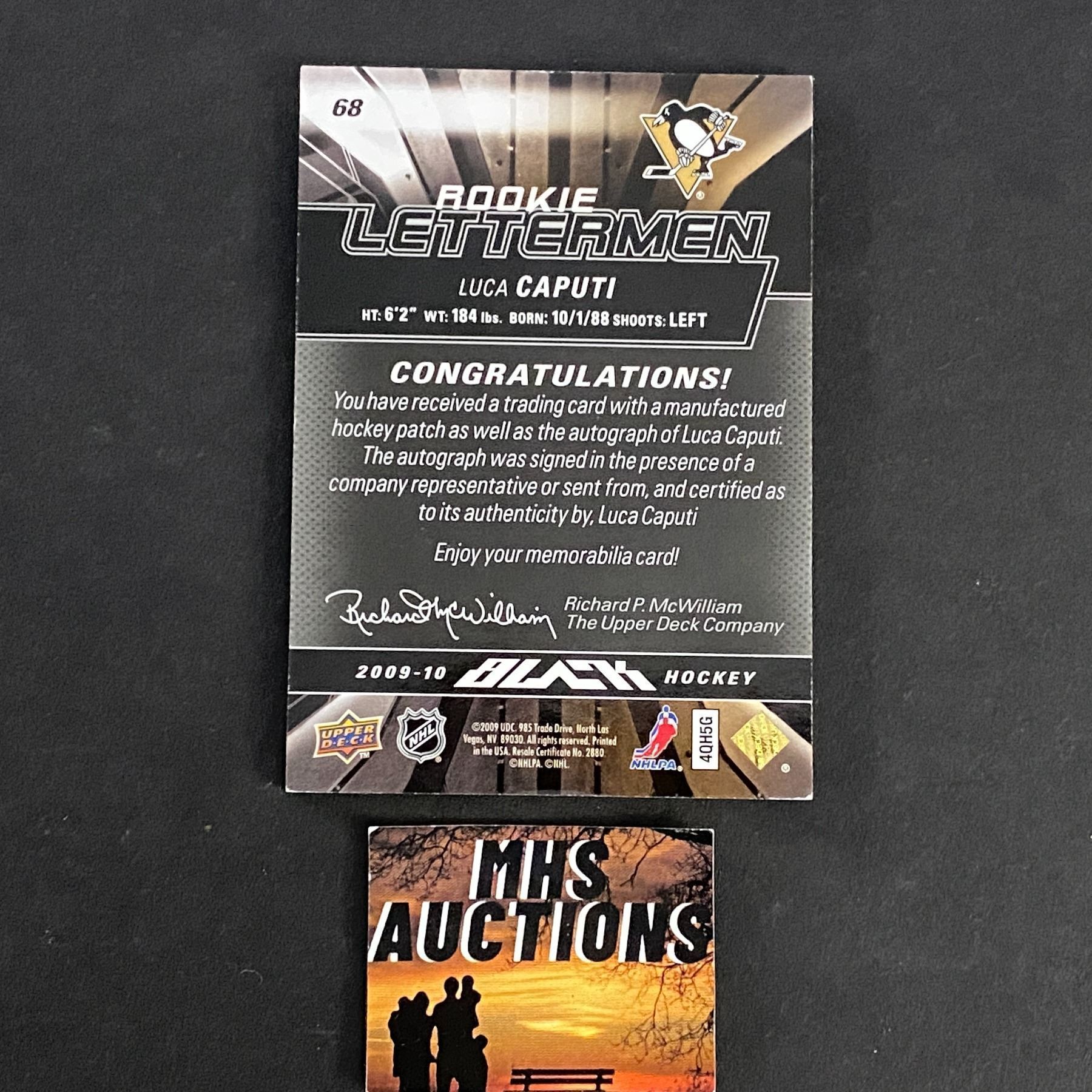 LUCA CAPUTI 2009-10 BLACK ROOKIE LETTERMAN PATCH CARD