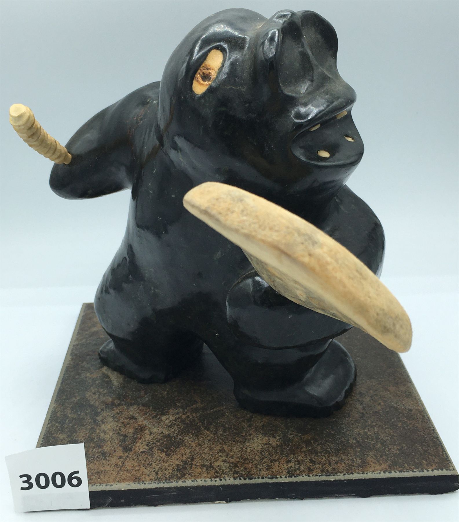 NOTE: SIGNED "LNA" ON BOTTOM. DRUM & BEATER ARE WHALE BONE & ANTLER.
