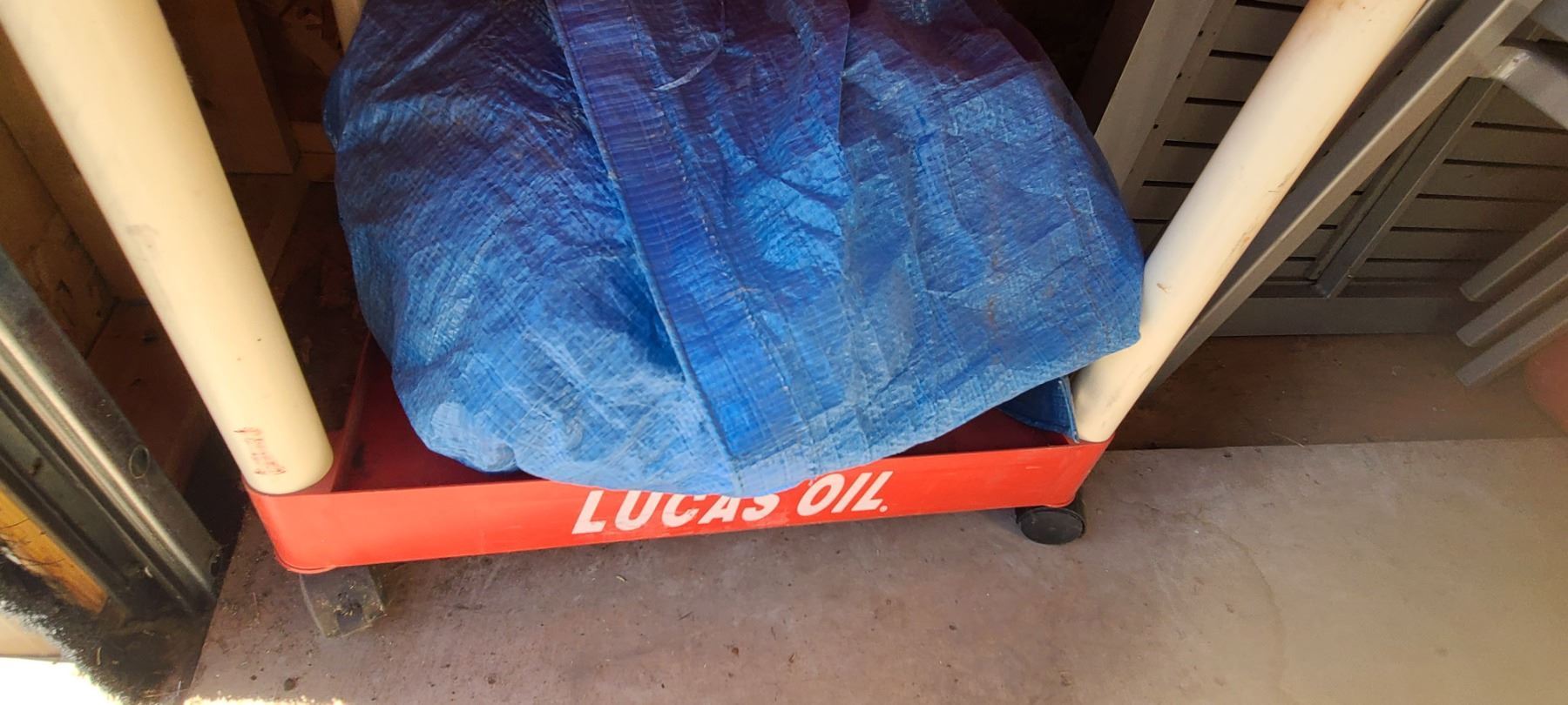LUCAS OIL STAND COMES WITH TARP AND CONTENT