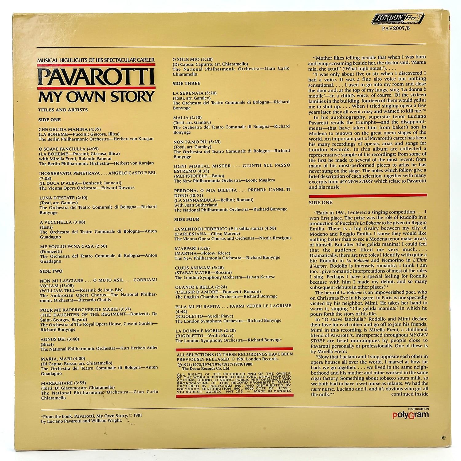 #9570 - FROM PRIVATE COLLECTION OF CLASSICAL/OPERA RECORDS. GATEFOLD 2X VINYL LP RECORD ALBUM. CLASSICAL, ROMANTIC, OPERA, DECCA RECORDS PAV2003/4