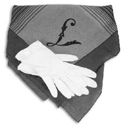 <b>476. LUCILLE BALL'S WHITE GLOVES AND SCARF </b>LUCILLE BALL (1911-1989) American comedic actress and a star, with husband Desi Arnaz, in the classic series "I Love Lucy". An exquisite set of Lucy's personal items, a pair of beautiful white cotton gloves and a bright scarf bearing a large, ornate initial "L" printed thereon. The white gloves are about 8" long, with ornate, embroidered bows at the cuff; the red silk scarf bears a blue border, with an ornate initial "L" within the red field. Of course, gloves and an initialed scarf are emblematic of Lucy's career, following her from her earliest dates with Desi Arnaz on "I Love Lucy". Both gloves and scarf are in very fine condition - indeed, Lucy's scarf still bears traces of her perfume! Included is Franklin's letter describing his long-term friendship with Lucy. In part: <i>"...Lucille Ball starred on Broadway in a show called "Wildcat" at the Alvin Theatre, which is now called the Neil Simon Theatre. I knew several people in the cast of this show, which to the best of my recall ran in the late 60s. I met Lucille and when I told her that I had been Eddie Cantor's closest friend she nearly cried because she made her debut in Eddie Cantor's film "Roman Scandals" in 1934 as one of the Samuel Goldwyn Girls. Lucille was the only girl who volunteered during a scene where Eddie Cantor was to duck a pie in the face only to have it hit her in the face. Eddie told me much later that he knew from that moment that Lucille would let it all hang out and that she would become a huge success. It was a crucial moment in Lucy's life and career..."</i> <b>$800-1,200</b>