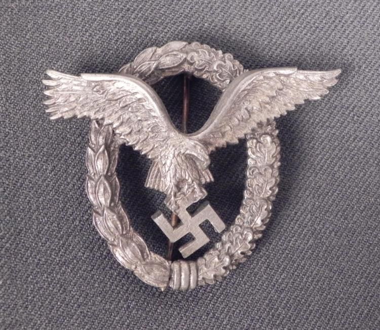 LUFTWAFFE PILOT'S BADGE-LATE WAR-WITH REPLACEMENT PIN HEAVY AGEING, ESPECIALLY TO REVERSE--APPEARS TO HAVE REPLACED PIN AND CLASK ON REVERSE-NO VISIBLE MARKS