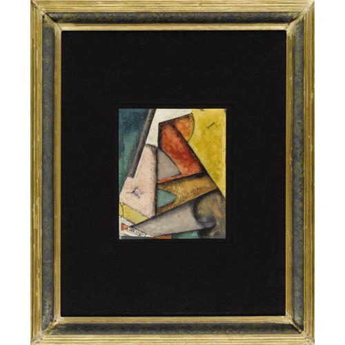 <B>LUIBOV POPOVA</B></I> (Russian 1889-1924)<BR><I>Untitled</B></I><BR>Mixed media on paper<BR>9 x 7-3/8 inches (27.9 x 21.6 cm)<BR>Initialed lower right<BR><BR> <B>Condition Report:</B> Minor abrasion on outer edges from previous frame<BR><BR><b>Shipping:</b> Requires 3rd Party Shipping (<a target="_blank" href="http://www.heritageauctions.com/common/shipping.php">view shipping information</a>)