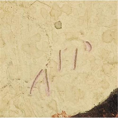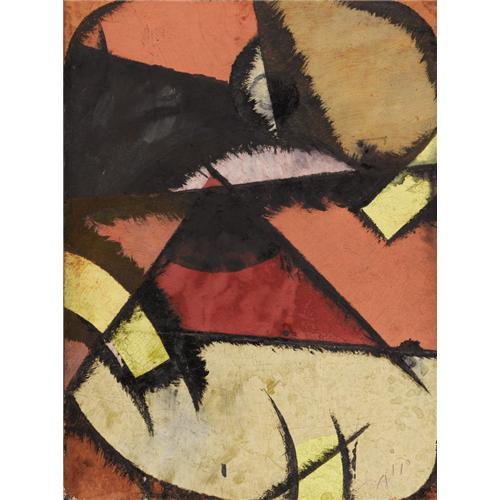 <B>LUIBOV POPOVA</B></I> (Russian 1889-1924) <BR>Oil and gouache on paper<BR>8-1/2 x 6-1/4 inches (21.6 x 15.9 cm)<BR>Initialed lower right <B>Condition Report:</B> minor paint loss in lower left of image<BR><BR><b>Shipping:</b> Requires 3rd Party Shipping (<a target="_blank" href="http://www.heritageauctions.com/common/shipping.php">view shipping information</a>)