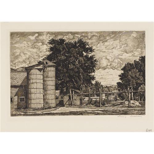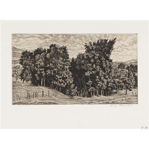 <B>LUIGI LUCIONI</B></I> (Italian-American 1900-1988)<BR><I>Classic Pastures; Tree Tapestry; Two Silos; Birch Group; Pattern of Trees; Vermont Splendor; Beyond the Elm; The Big Willows; Peaceful Pastures; The Spreading Maple (+ 2 additional works), circa 1940s -</B></I><BR>Etchings<BR> 10-1/2 x 15-5/8 inches largest, (26.7 x 39.7 cm) (largest)<BR>AAA, pub.<BR>Most signed in the plate, and inscribed in the lower margin; all signed in pencil<BR><BR>Provenance:<BR>Bessie Heard (McKinney, Texas);<BR>Bessie Heard Trust <B>Condition Report:</B> Normal signs of wear as appropriate with age, mounting tabs, and some with minot toning<BR><BR><b>Shipping:</b> Requires 3rd Party Shipping (<a target="_blank" href="http://www.heritageauctions.com/common/shipping.php">view shipping information</a>)