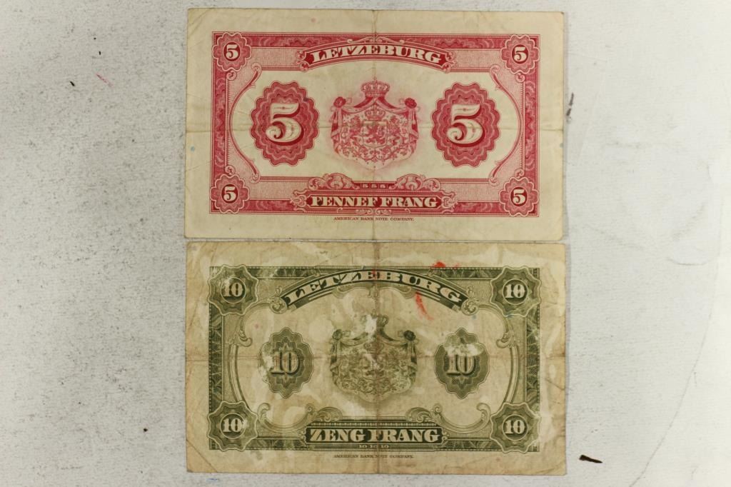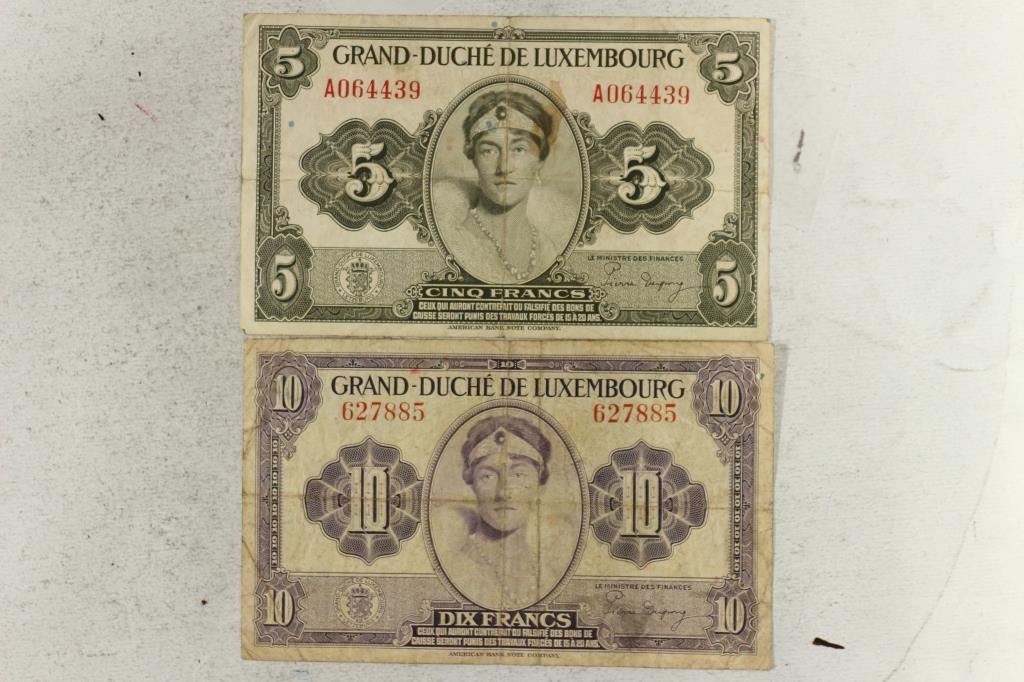 LUXEMBOURG VINTAGE 5 & 10 FRANCS CURRENCY