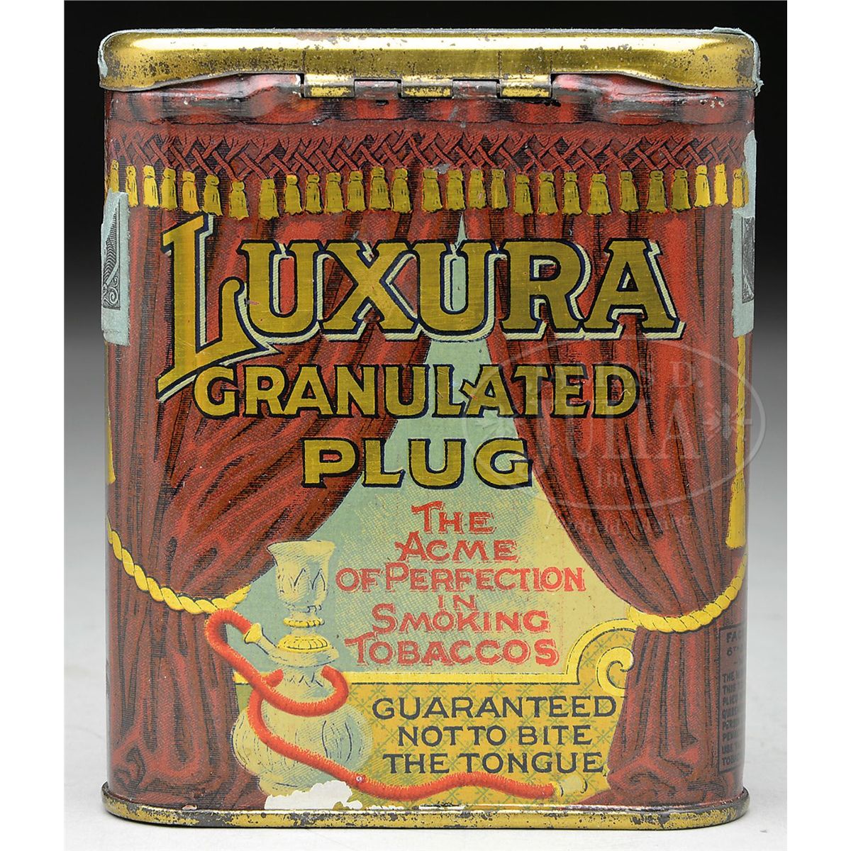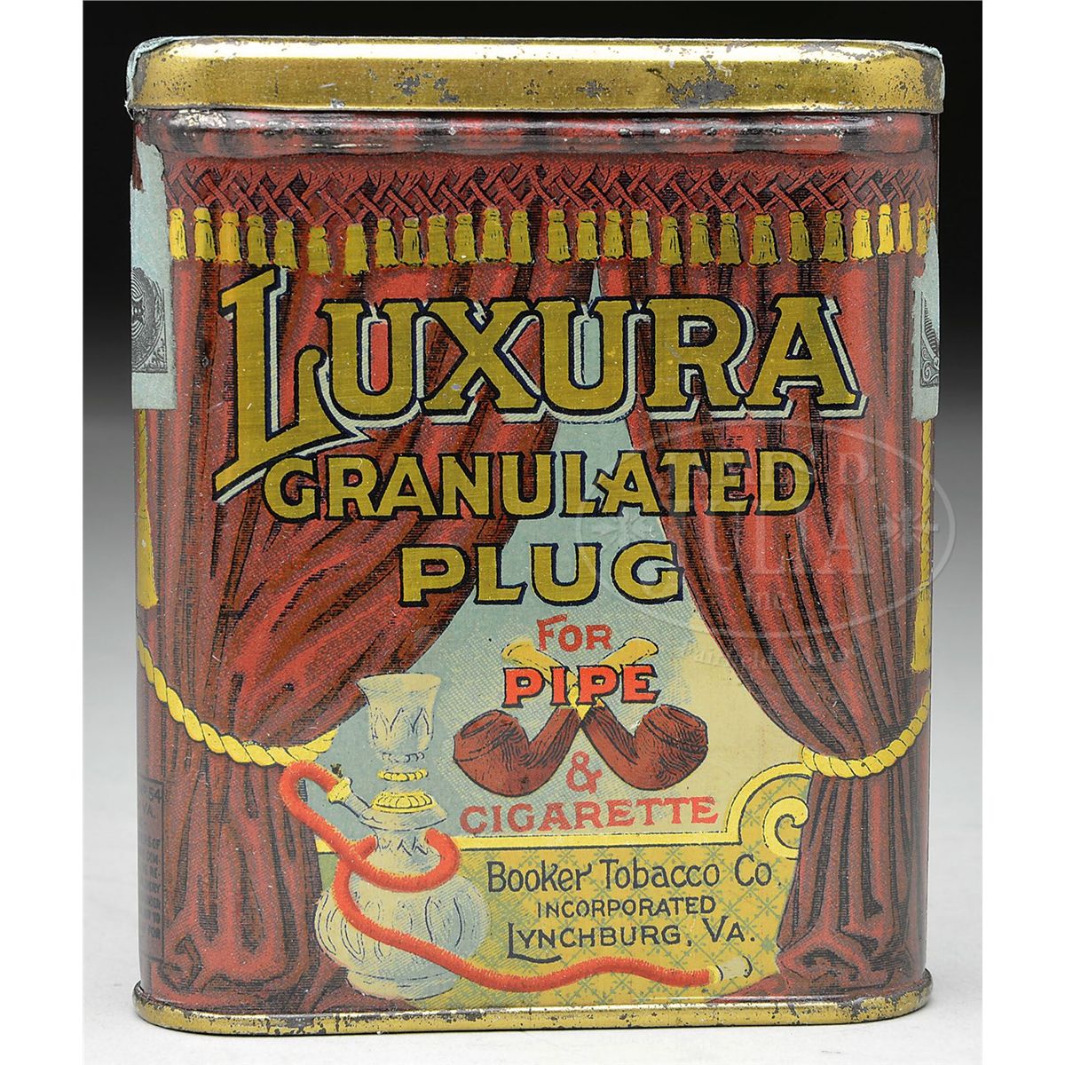 Interior scene with draping burgundy curtains and hookah pipe. Produced by the Booker Tobacco Co. of Lynchburg, VA. SIZE: 4" h. CONDITION: Near excellent with some minor chips and scratches. 1-13226-2