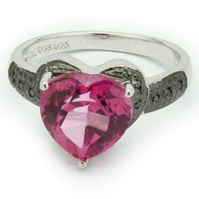 LUXURIOUS HEART PINK TOPAZ, DIAMOND SILVER RING