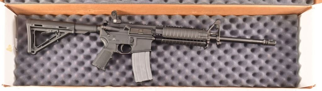 16" barrel, with 1" flash suppressor, Troy Industries fixed battle sight, Magpul stock. Like new, in box.