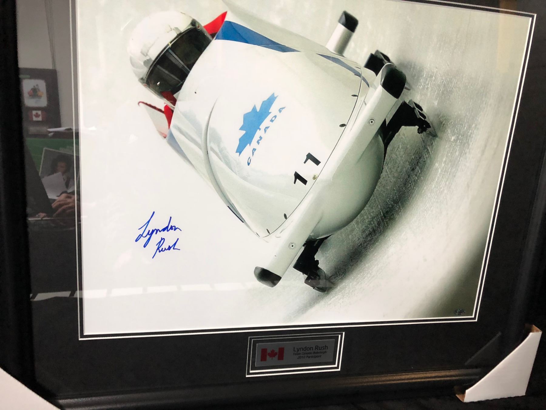 LYNDON RUSH SIGNED TEAM CANADA BOBSLEIGH 2010 FRAMED COLOR PHOTO (GAMEDAY COA)