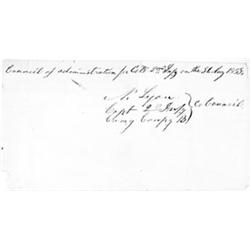 (1818 - 1861) Union brigadier general who met with Confederate representatives and declared "This means war", he later put down the pro-Confederate Missouri militia and faced Ben McCulloch at Wilson's Creek where he was killed in action. Pre-war signature "N. Lyon Capt. 2d Infy. Com'g Comp'y B", cut from a document. Very good to fine.