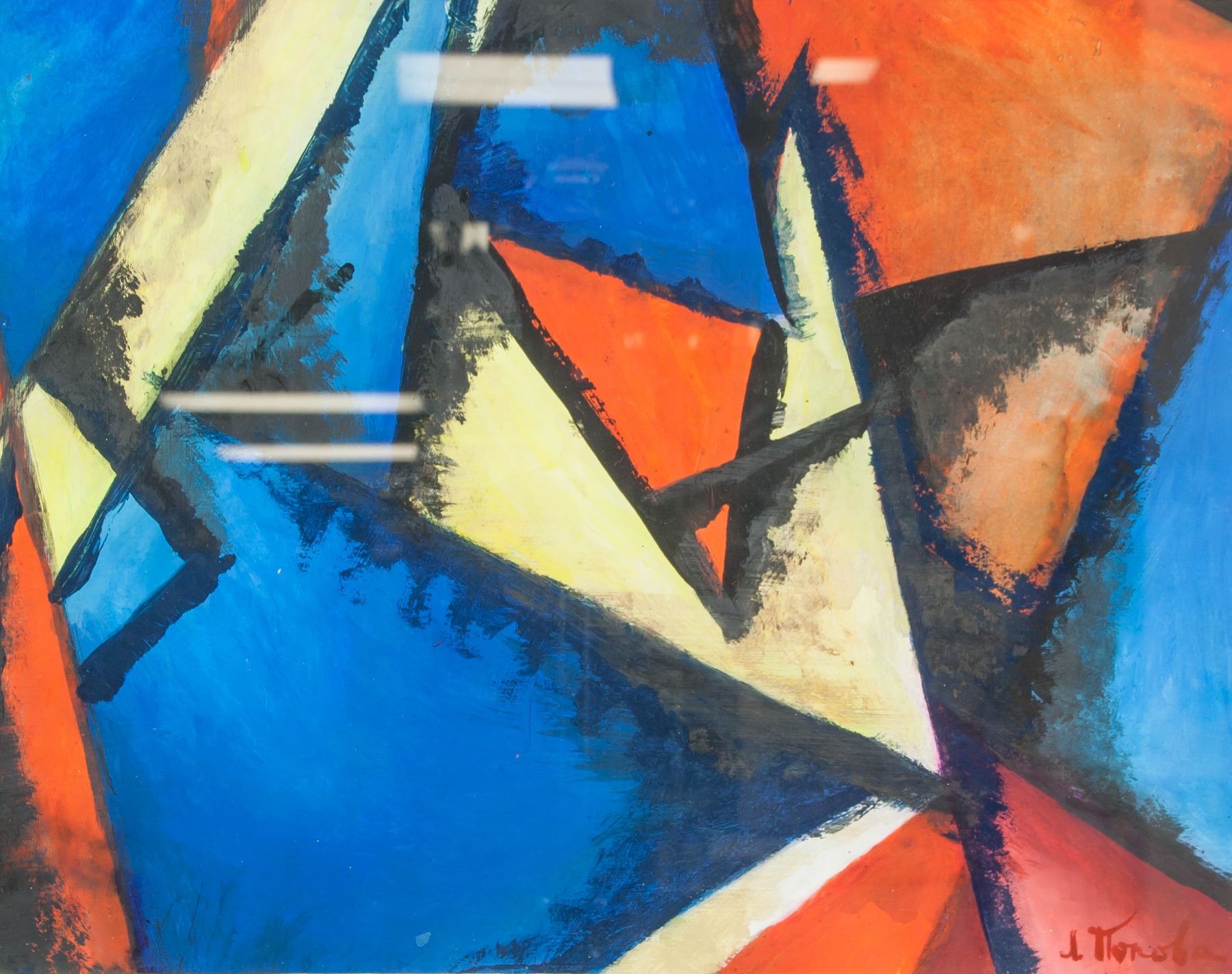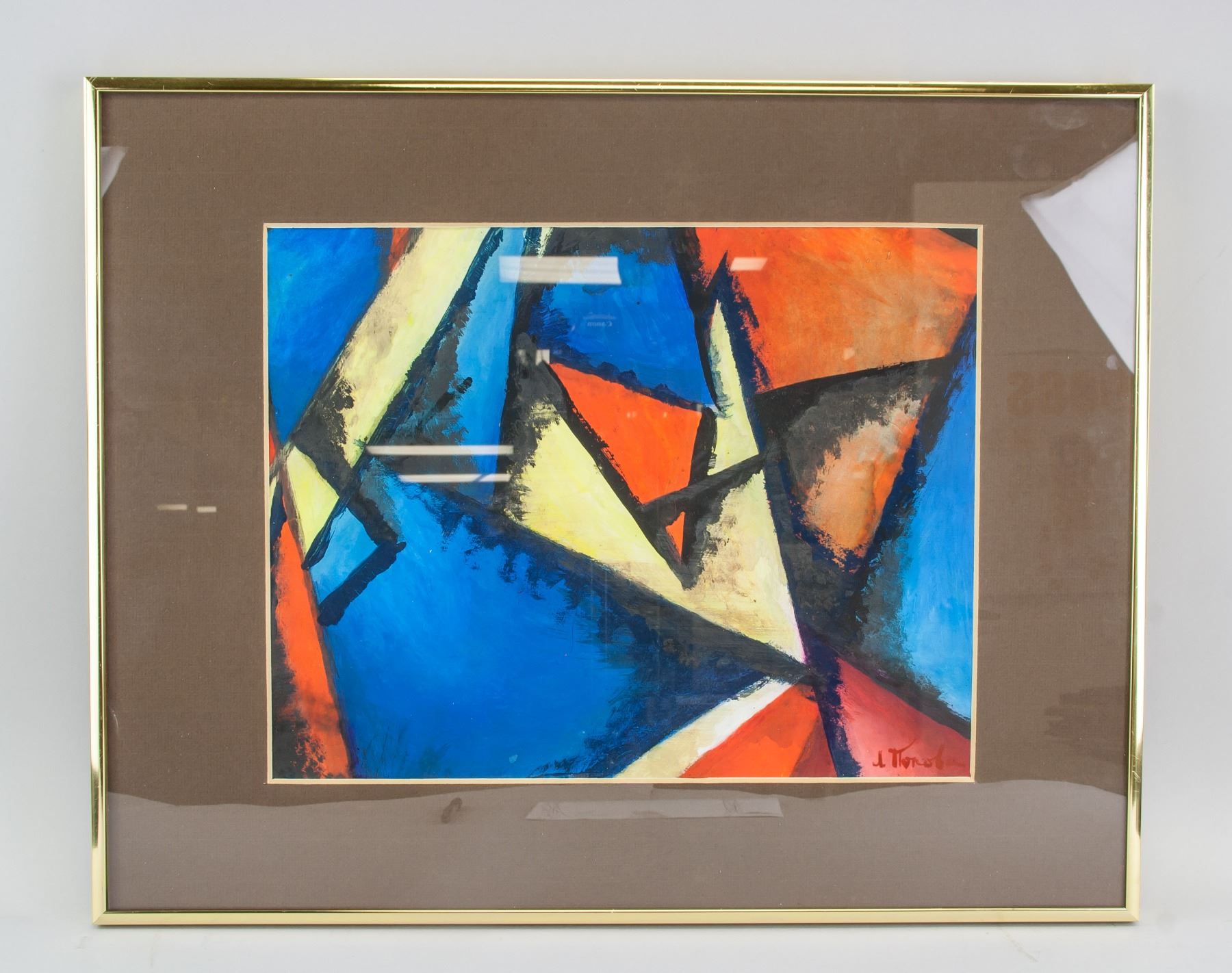 Gouache on paper painting. Signed and attr. Lyubov Popova (Russian 1889-1924) on lower right corner. 10.5 x 13.5 in (26.7 x 34.3 cm). Lyubov Sergeyevna Popova (Russian, April 24, 1889-May 25, 1924) was a Russian avant-garde artist (Cubist, Suprematist and Constructivist), painter and designer. PROVENANCE: Southern Ontario estate