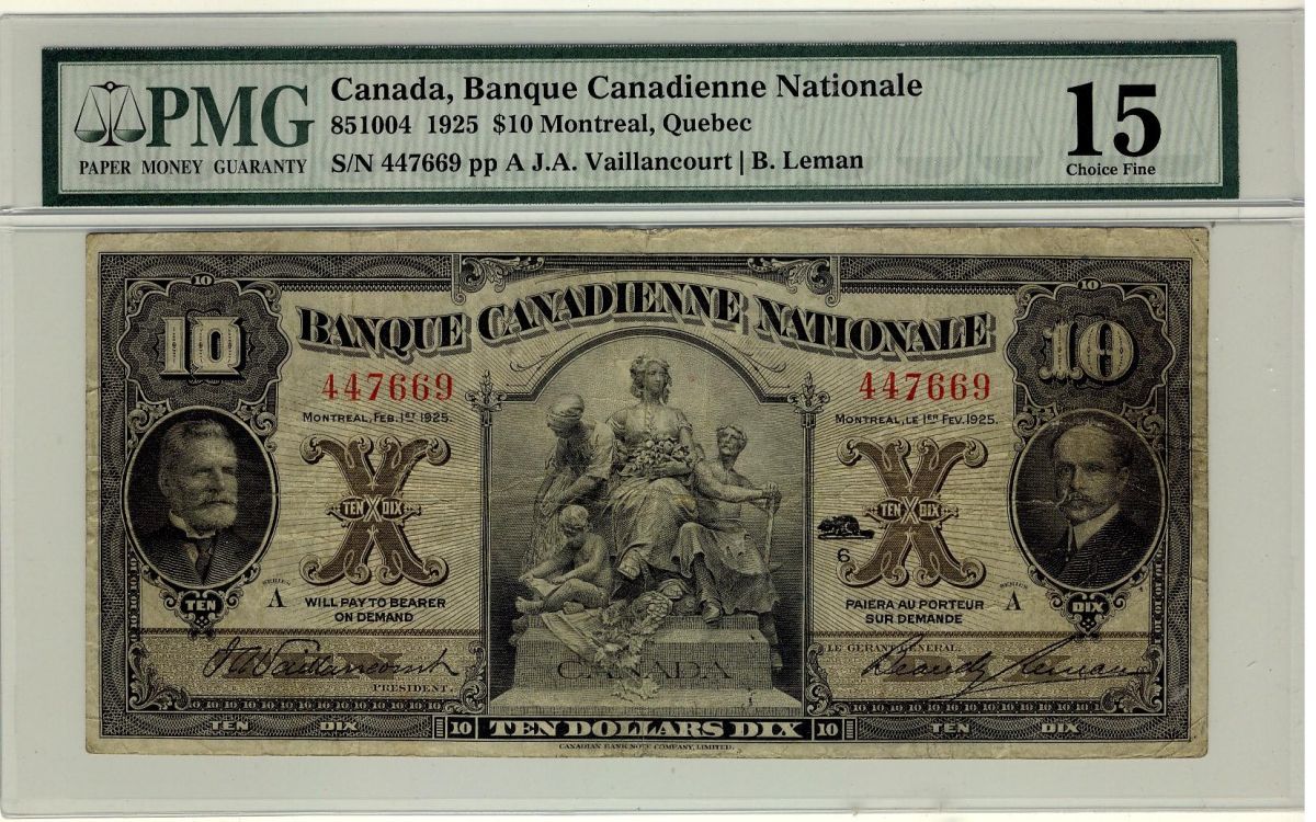 La Banque Canadienne Nationale, 1925 $10 #447669, CH-85-10-04, PMG F15