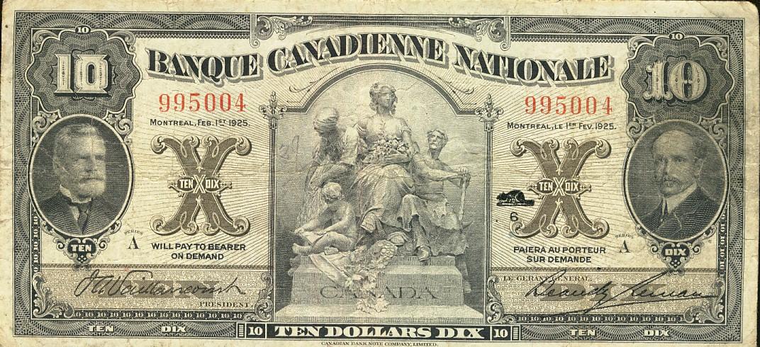 La Banque Canadienne Nationale 1925 $10 No.995004 CH-85-10-04 Fine