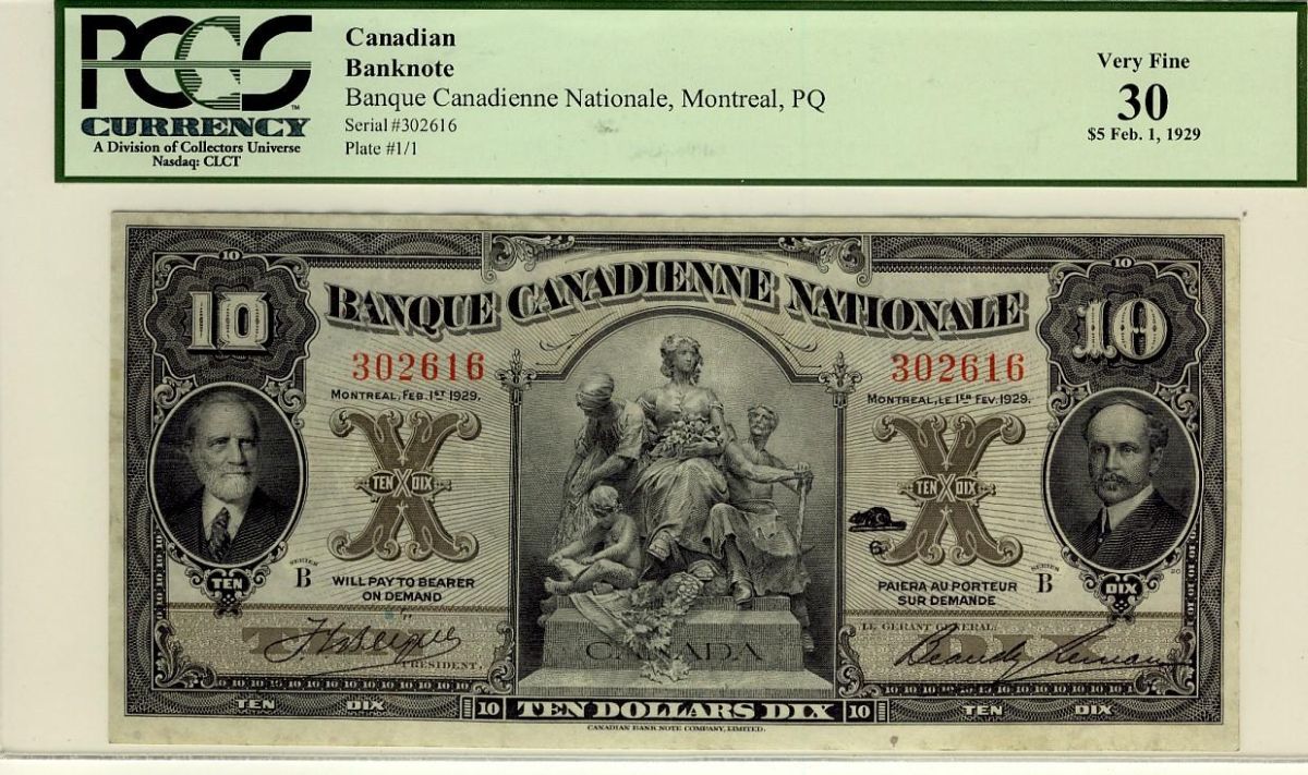 La Banque Canadienne Nationale 1929 $10 #302616 CH-85-12-04, PCGS VF30.