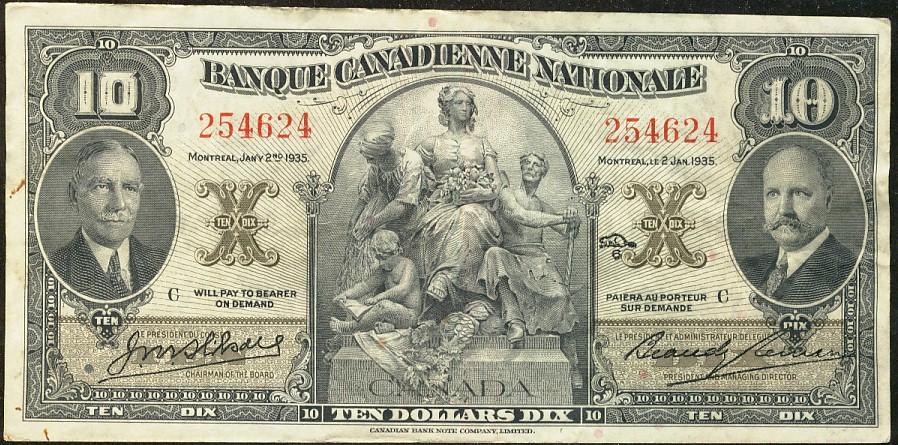 La Banque Canadienne Nationale 1935 $10 No.254624 CH-85-14-04 VF-EF
