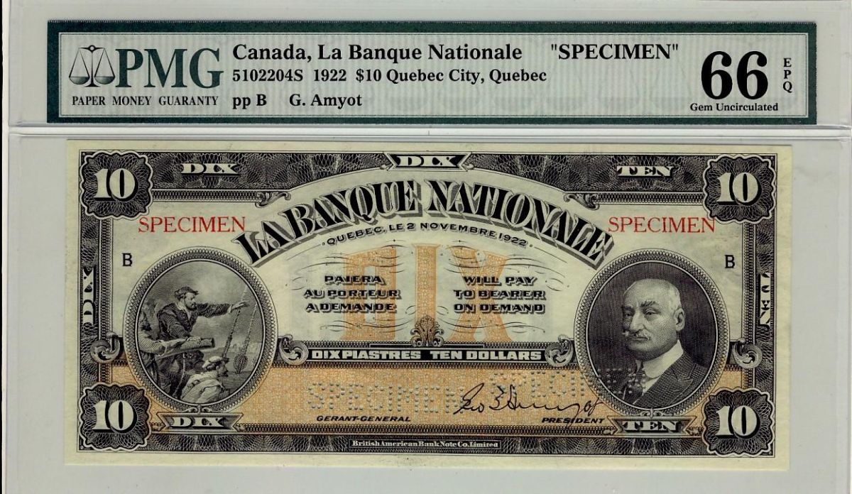 La Banque Nationale 1922 $10 CH-510-22-04S, PMG Gem UNC66 EPQ.