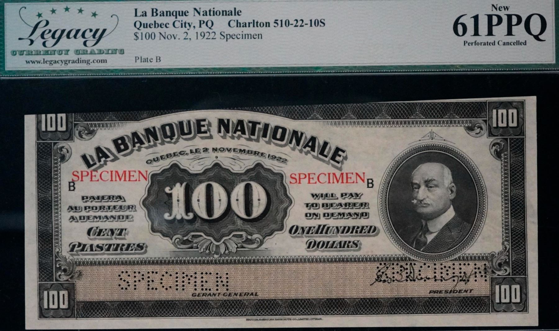La Banque Nationale 1922 $100 CH-510-22-10S, LCG Uncirculated-61PPQ.