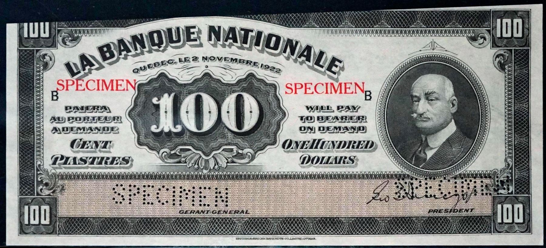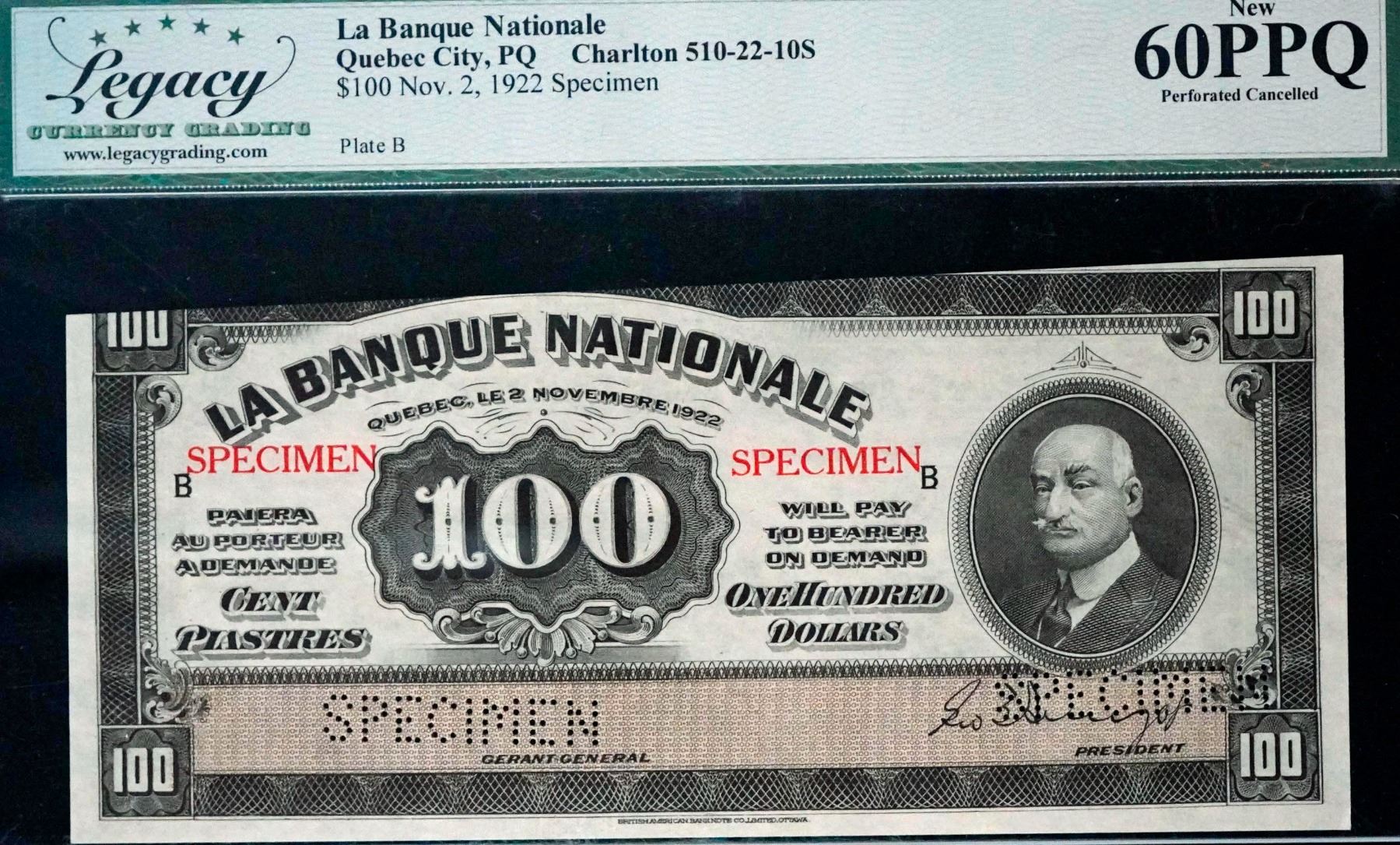 La Banque Nationale 1922 $100 CH-510-22-10S, Legacy Currency Grading Uncirculated-60PPQ.
