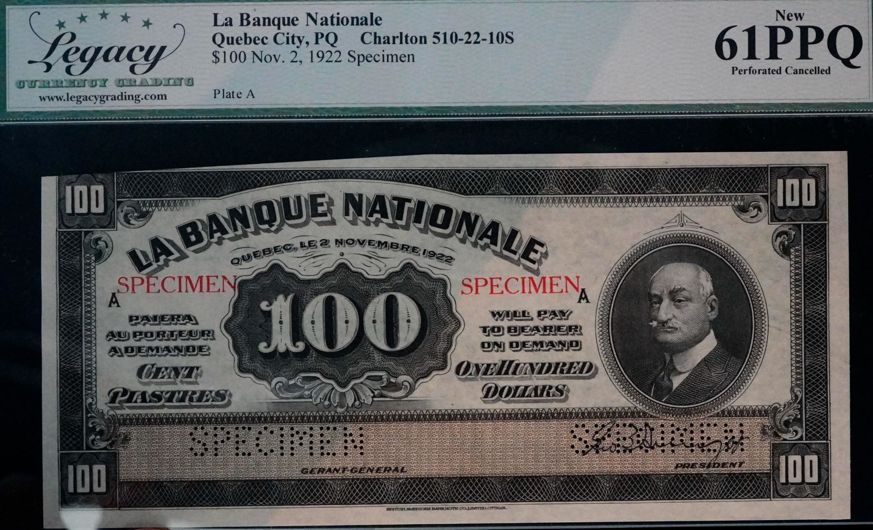 La Banque Nationale 1922 $100 CH-510-22-10S, Legacy UNC61PPQ.