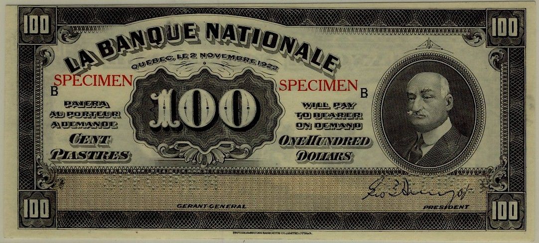 La Banque Nationale 1922 $100 CH-510-22-10S PCGS UNC62PPQ.