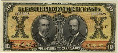 La Banque Provinciale 615-14-10 1913 $10 EF+++++. Looks uncirculated. Rare and so nice!