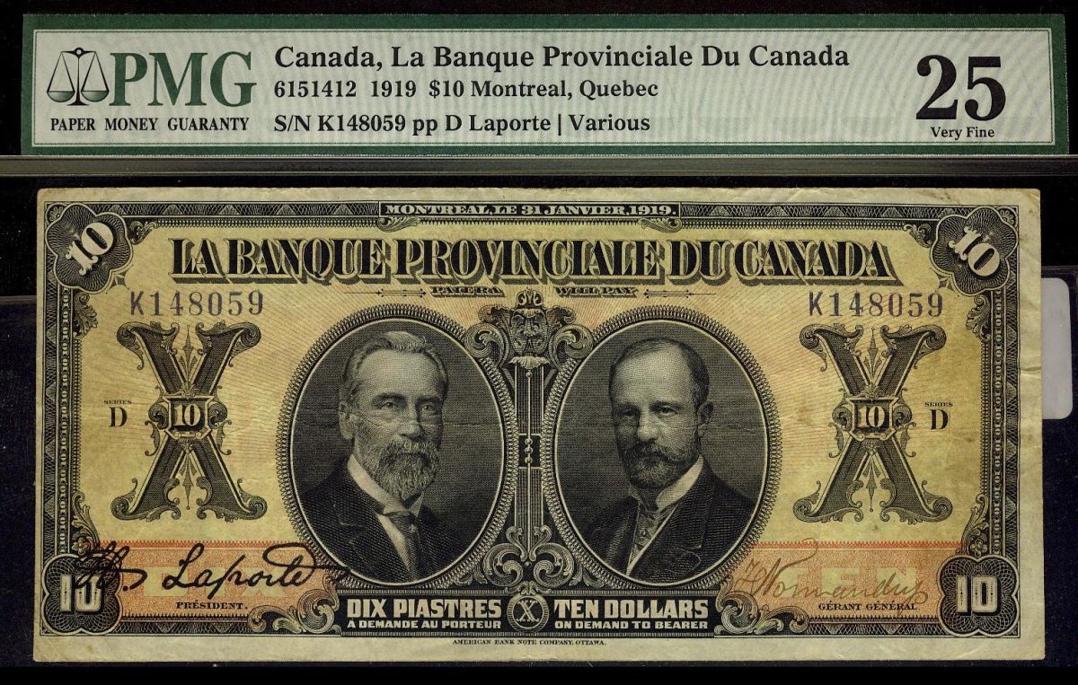 La Banque Provinciale du Canada 1919 $10 Orang Tint #K148059 CH-615-14-12 PMG VF25.