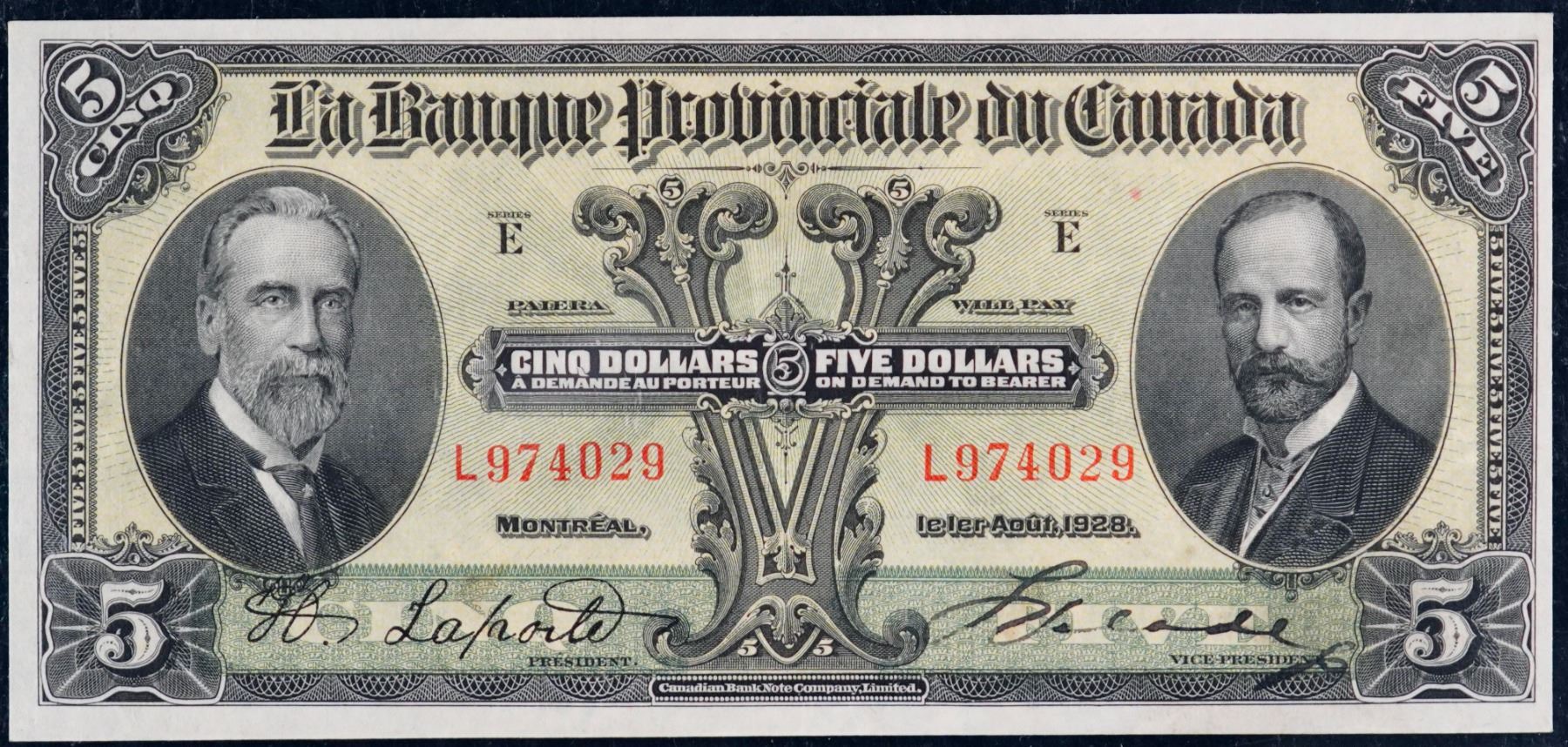 La Banque Provinciale du Canada;  1928 $5 #L974029, CH-615-14-08, LCG Choice Extra Fine-45.