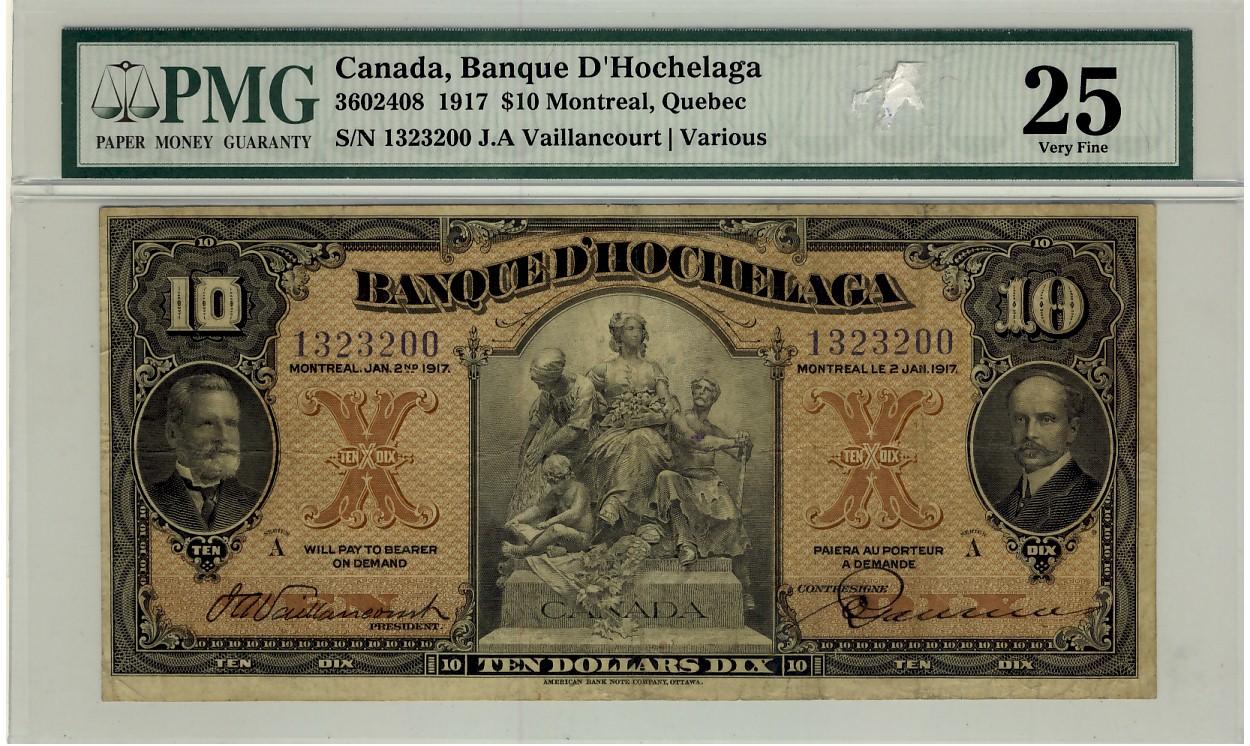 La Banque d'Hochelaga 1917 $10 1323200 CH-360-24-08 PMG VF25