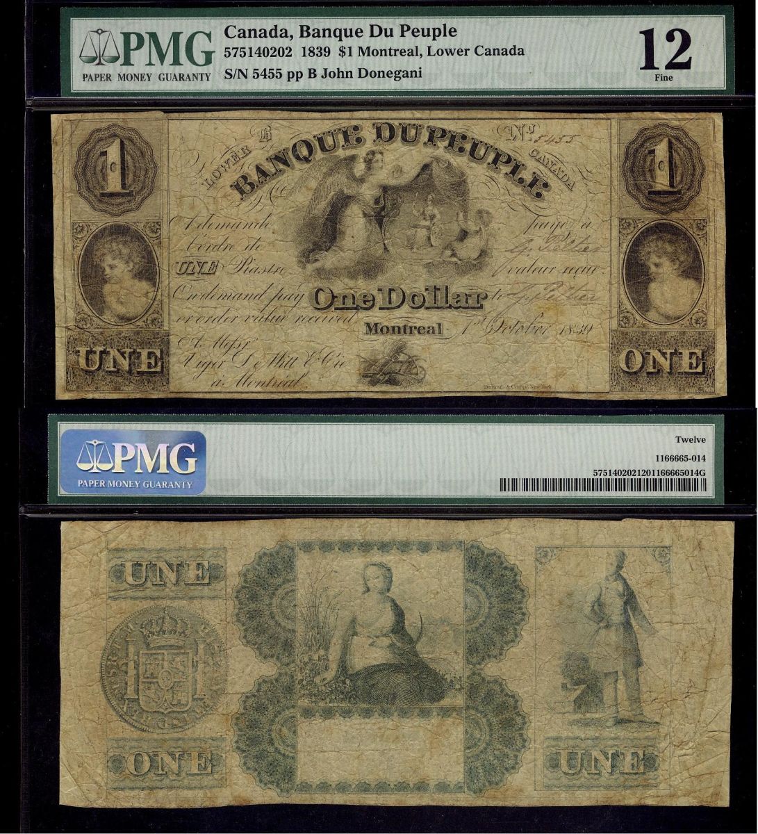 La Banque du Peuple 1839 $1 #5455 CH-575-14-02-02 PMG F12. Seldom seen. Rare!