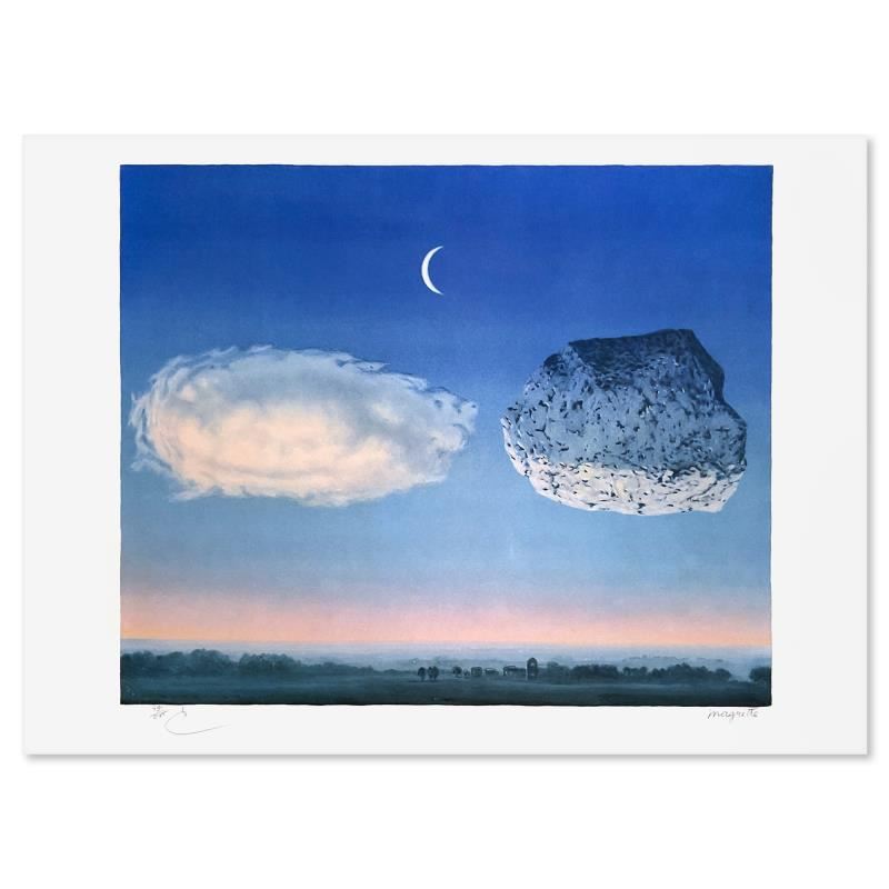 "La Bataille de l'Argonne" is a limited edition lithograph by Rene Magritte (1898-1967). This piece is numbered 45/275 and bears the dry stamps of the Magritte Foundation & ADAGP (Society of Authors in the Graphic and Plastic Arts) and is signed by the President of the Magritte Foundation, Charly Herscovici. This piece comes custom framed. Includes Certificate of Authenticity. Measures approx. 26" x 23.5" (frame), 20" x 17.5" (image).