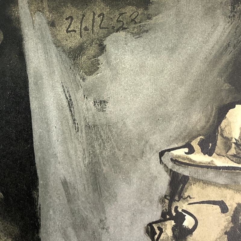 "La Comedie Humaine 21.12.53" is a lithograph on paper by Pablo Picasso (1881-1973). This piece is from Picasso's Human Comedy Series and was printed in Paris, France by Mourlot Studios in 1954. This piece comes framed. Includes Letter of Authenticity. Measures approx. 21" x 18" (frame), 13" x 10" (image).